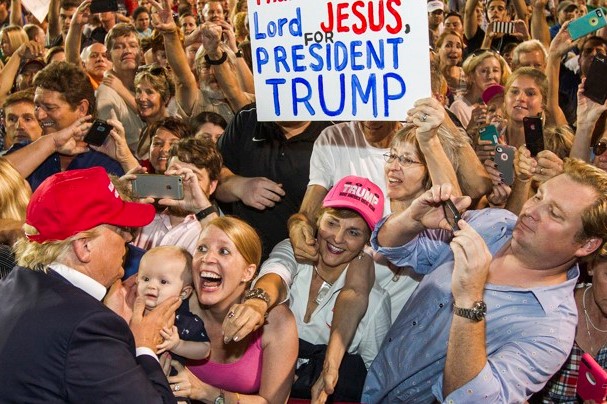 Of course, a large part of this deception is due to the way Jerry Falwell Jr., Pat Robertson, Franklin Graham, Robert Jeffress, et al. have been gushing over Trump like he’s another John the Baptist who’s paving the way for the Messiah. These “Christian leaders” have the ear of millions of evangelicals. If these “great men of God” say it, it must be true.