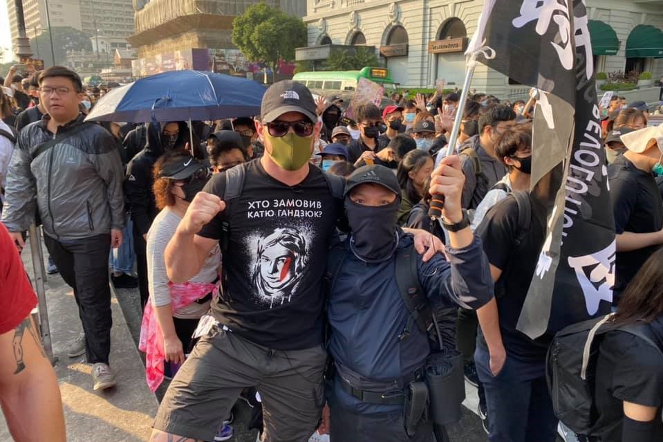 On December 1, the far-right activist Serhii Filimonov posted photos on Facebook showing himself and three Ukrainian friends upon their arrival in Hong Kong. The images were accompanied by the anti-Beijing’s unofficial slogan: “Fight for Freedom. Stand with Hong Kong!!”