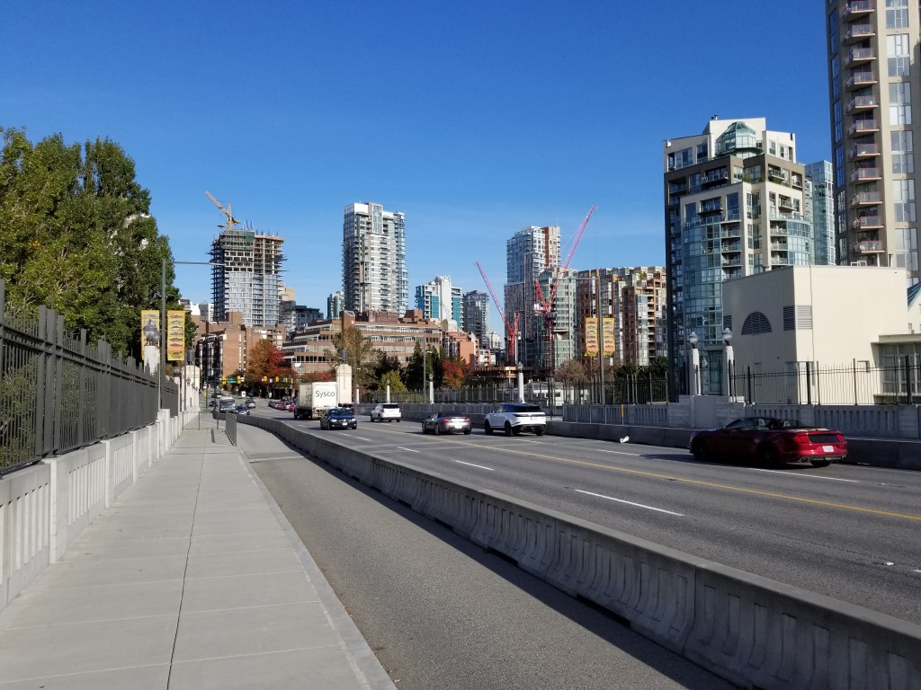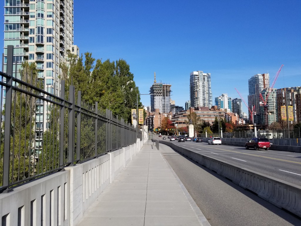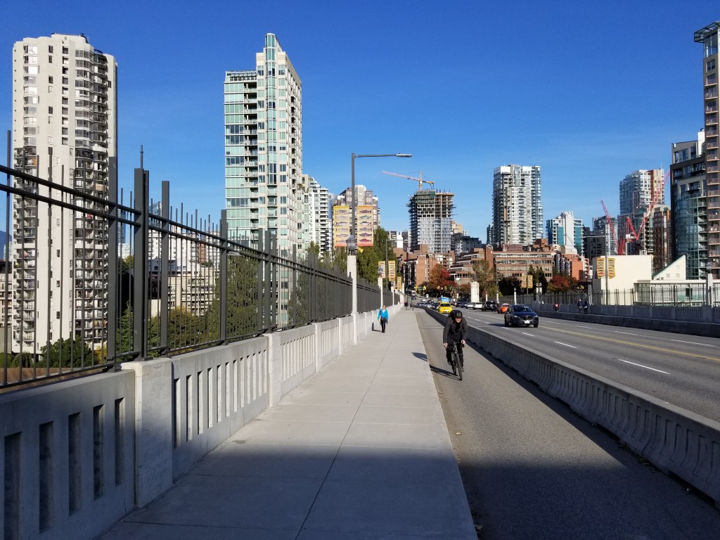 Since the mid-1990s, the city of Vancouver has investigated various options to rectify the situation. The two most prominent options were 1) to introduce bicycle lanes on the bridge’s vehicle deck by reallocating one or more vehicle lanes, and 2) to build horizontal extensions on the outside of the bridge to create additional sidewalk space. Other options have included building an entirely new pedestrian and/or cyclist only bridge, and building another deck on the bridge below the existing deck.