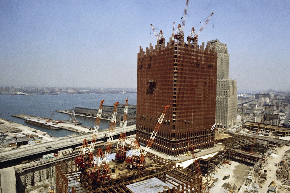 We know that the floors were brought in an set in place in sections, not just because the article from Engineering News Record says so, but also because we have photographic evidence that supports the claim.