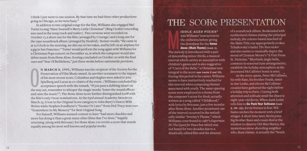 La-La Land Records, 20th Century Fox, Fox Music and Sony Music present HOME ALONE 25th ANNIVERSARY: LIMITED EDITION, a very special restored, remastered and expanded 2-CD re-issue of renowned composer John Williams’ (JAWS, STAR WARS, EMPIRE OF THE SUN, A.I. ARTIFICIAL INTELLIGENCE) original motion picture score to the timeless 1990 holiday classic feature film HOME ALONE, starring Macaulay Culkin, Joe Pesci and Daniel Stern, and directed by Chris Columbus. For this deluxe release, produced by Mike Matessino and Nick Redman, and executive produced for Sony Music by Jeff James and Didier C. Deutsch, producer Matessino worked with newly discovered elements (2’’ scoring masters containing 3-track mixes), which he transferred, mixed and mastered at high resolution (96k/24bit). The result is a strikingly sonically improved presentation of the score above and beyond any other HOME ALONE soundtrack release. Disc One contains the film score, with additional music, and Disc Two presents the re-mastered original 1990 album presentation with bonus tracks, including the addition of two tracks recorded for the film by Southside Johnny Lyon and the songs “Run Rudolph Run” and “Rockin’ Around the Christmas Tree.” With revised in-depth liner notes by Matessino and joyous all-new art direction by Jim Titus, this is the definitive release of a holiday classic from one of filmdom’s greatest and most beloved composers.