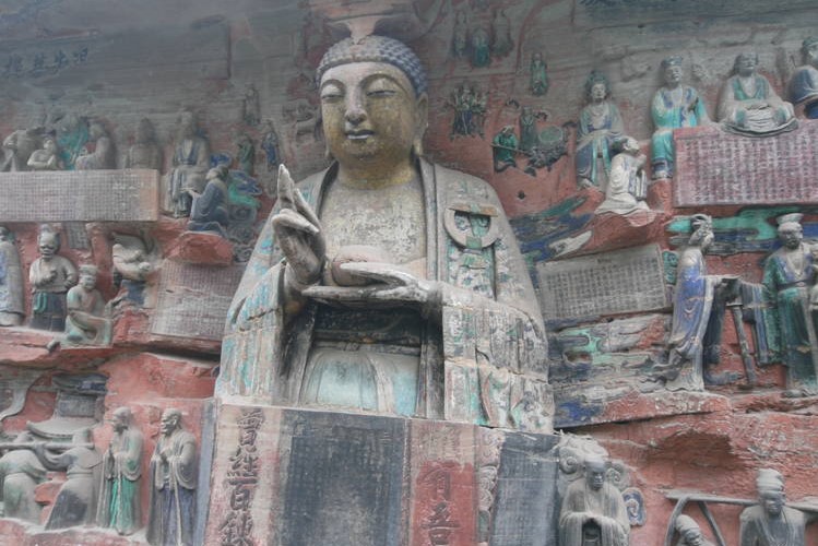The steep hillsides of the Dazu area contain an exceptional series of rock carvings dating from the 9th to the 13th century. They are remarkable for their aesthetic quality, their rich diversity of subject matter, both secular and religious, and the light that they shed on everyday life in China during this period. They provide outstanding evidence of the harmonious synthesis of Buddhism, Taoism and Confucianism.