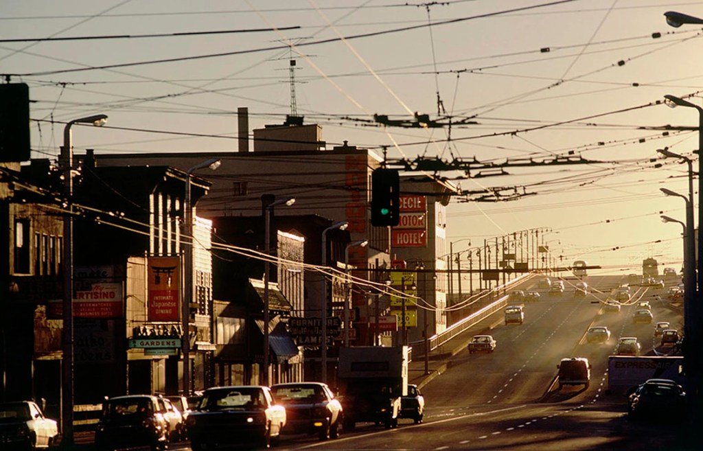Captured during a rare Vancouver snowstorm, this café was at 750 Davie Street, at the heart of what remains the city’s most recognizable “gaybourhood.” The site is now a condo tower, with another condo tower across the street. The café’s neon sign, meanwhile, is now an artifact at the Museum of Vancouver.