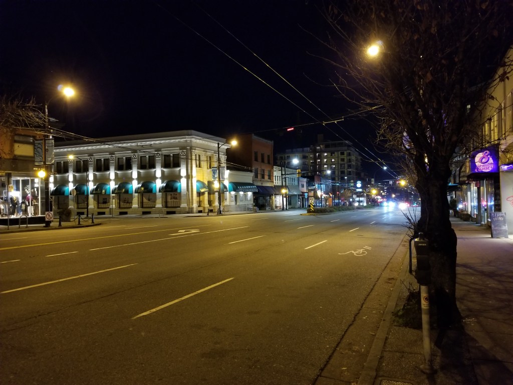 The route begins as “West Broadway” at the intersection of Wallace Crescent and 8th Avenue, in the affluent residential neighbourhood of West Point Grey, a few kilometres east of the University of British Columbia (UBC). Past Alma Street, Broadway takes over from 10th Avenue as one of Vancouver’s major thoroughfares, as it enters Greek West Broadway (or Greektown) section of Vancouver’s Kitsilano district. East of here are several blocks of generally trendy, upscale shops interspersed with low-rise apartment blocks and small supermarkets. The surrounding neighbourhoods generally consist of large, older homes dating from the early twentieth century, many of which have been subdivided into rental suites.