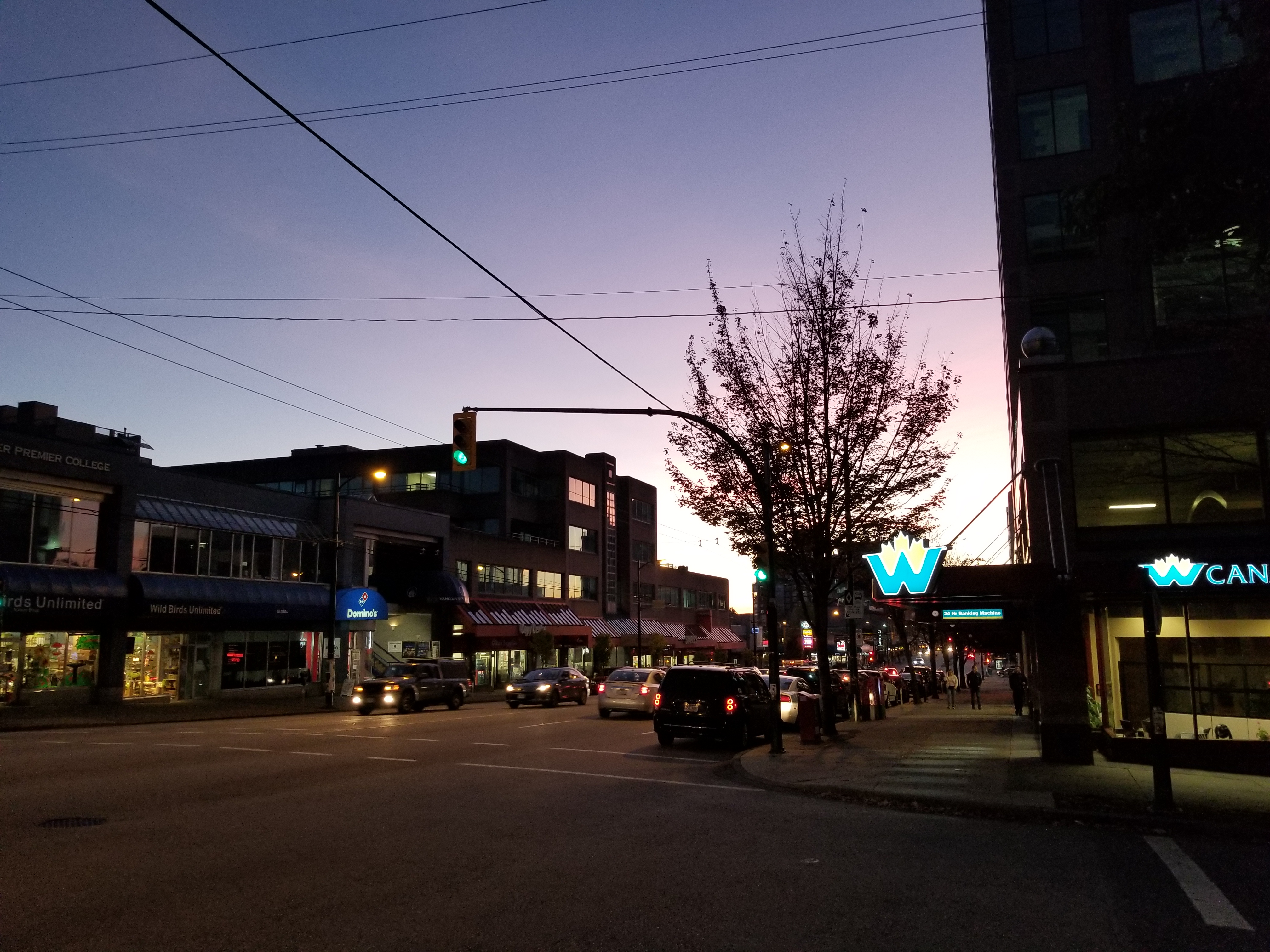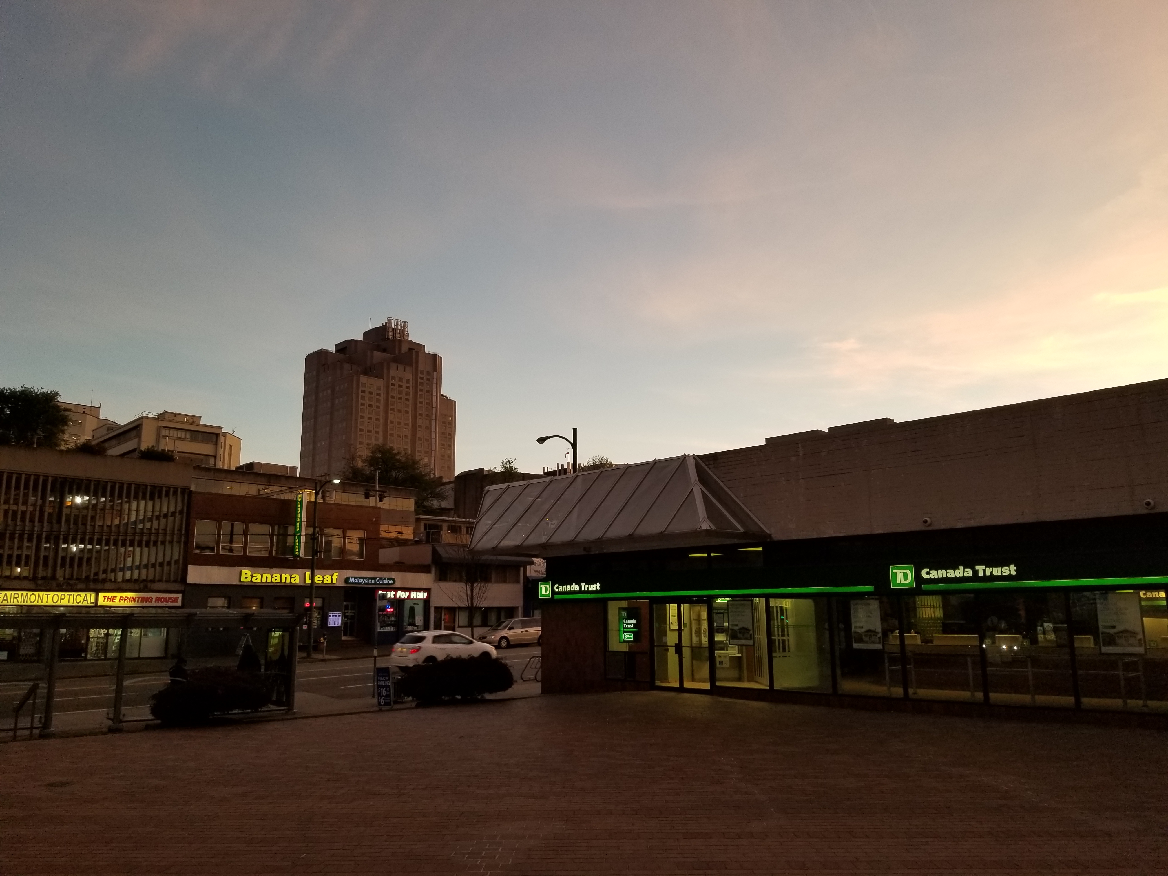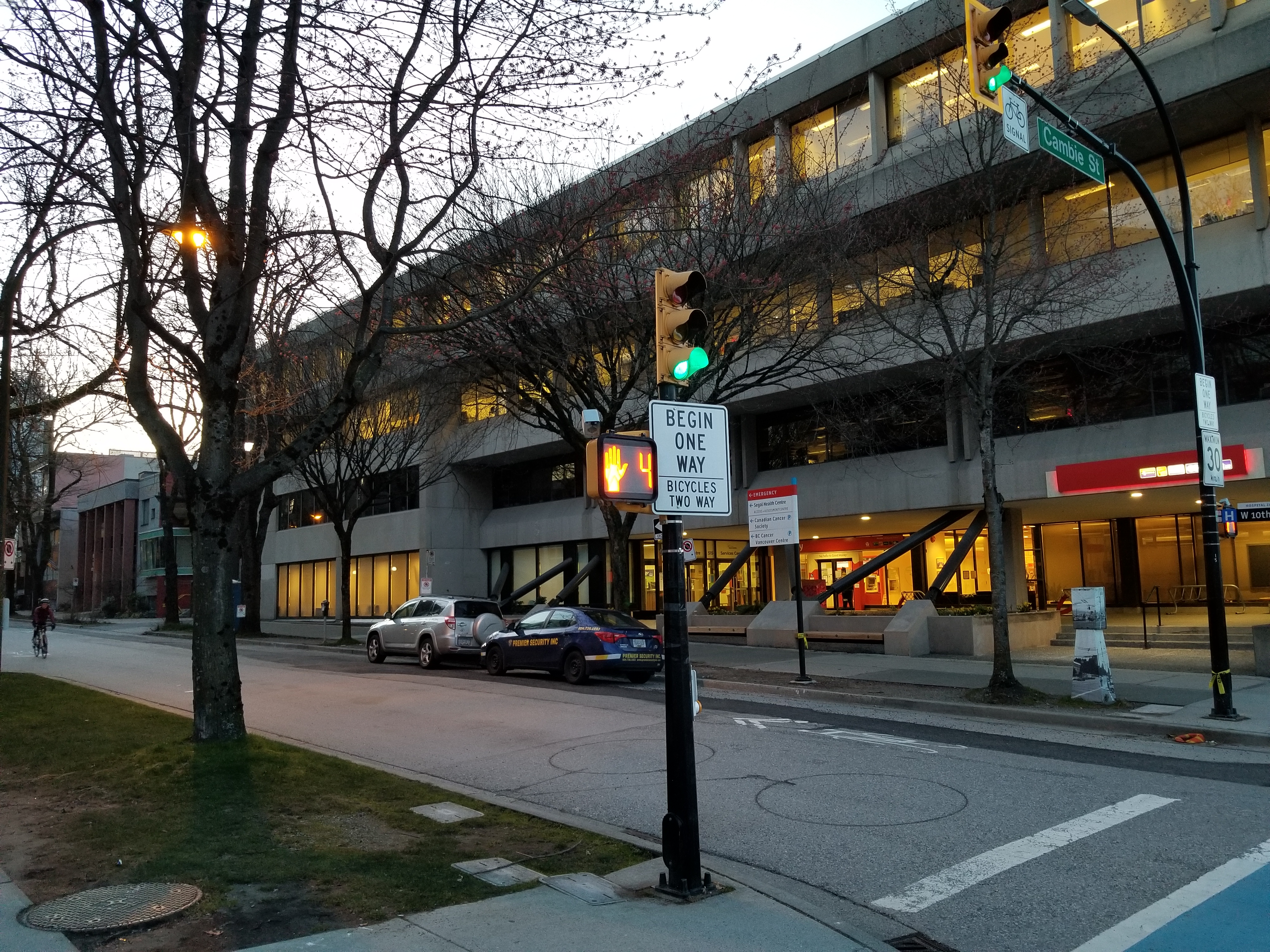 The route begins as “West Broadway” at the intersection of Wallace Crescent and 8th Avenue, in the affluent residential neighbourhood of West Point Grey, a few kilometres east of the University of British Columbia (UBC). Past Alma Street, Broadway takes over from 10th Avenue as one of Vancouver’s major thoroughfares, as it enters Greek West Broadway (or Greektown) section of Vancouver’s Kitsilano district. East of here are several blocks of generally trendy, upscale shops interspersed with low-rise apartment blocks and small supermarkets. The surrounding neighbourhoods generally consist of large, older homes dating from the early twentieth century, many of which have been subdivided into rental suites.
