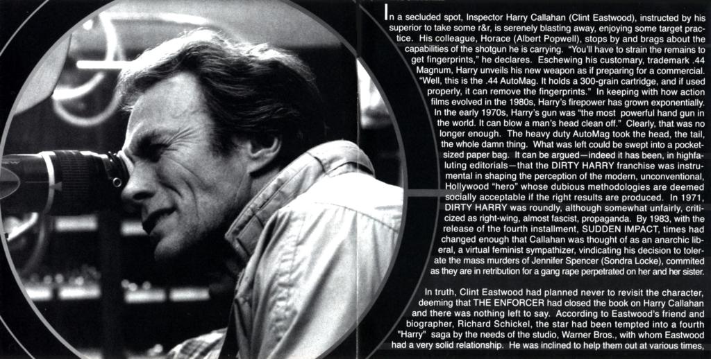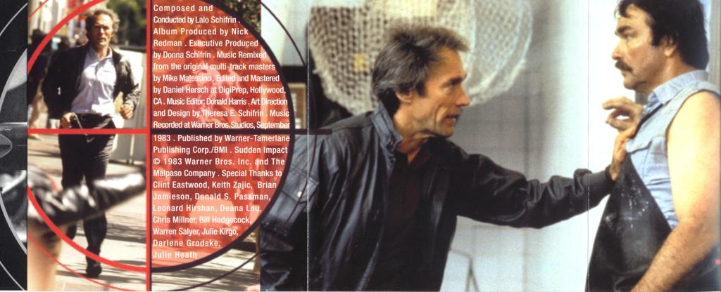 Clint Eastwood returned to one of his most enduring roles in 1983’s Sudden Impact, the fourth of five times he played “Dirty” Harry Callahan, and the only entry in the series he directed. The deliberate pacing of most of Eastwood’s directorial outings is gone, in its place a succession of violent actions scenes which make for great entertainment. The third film in the series, The Enforcer, had been scored by Jerry Fielding, but Lalo Schifrin returned this time and delivered a typically stark, modern effort.