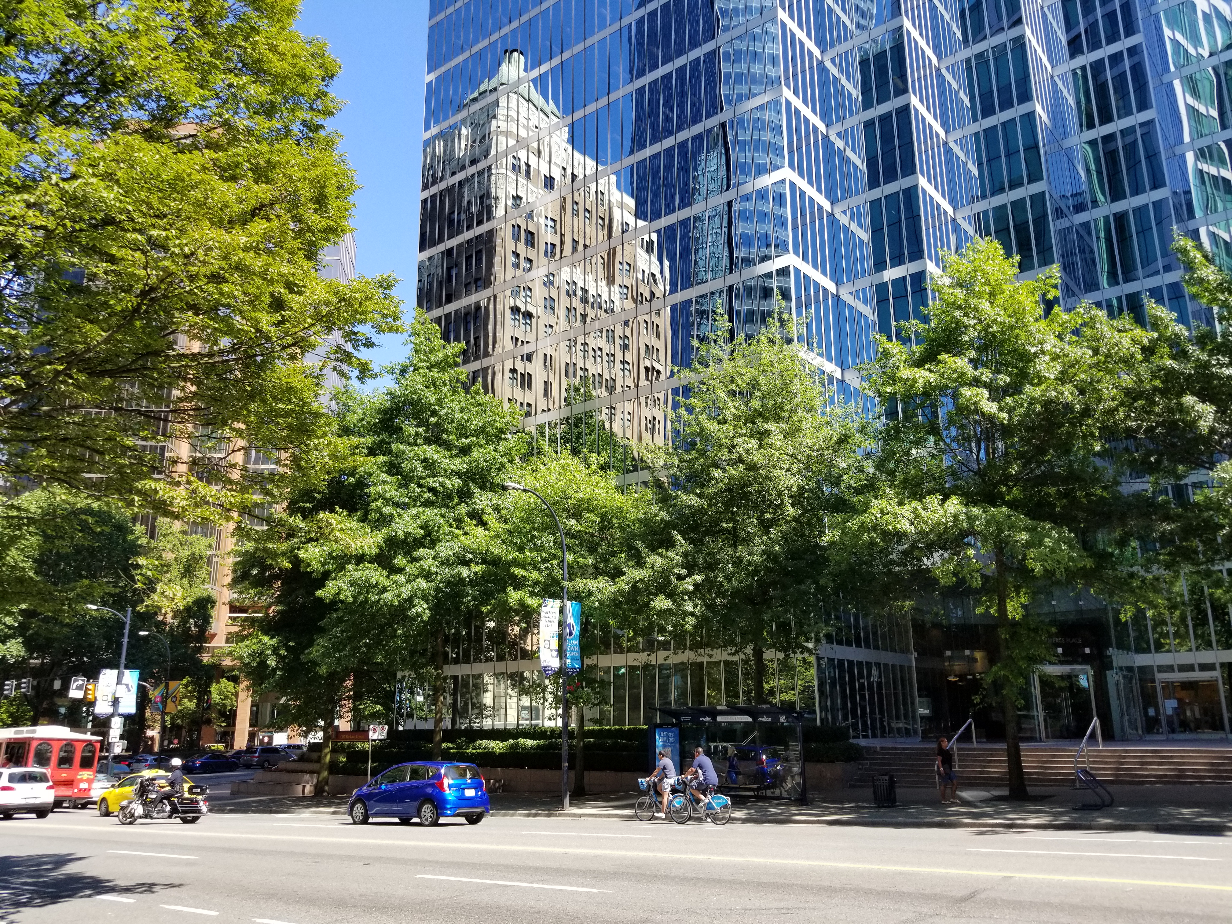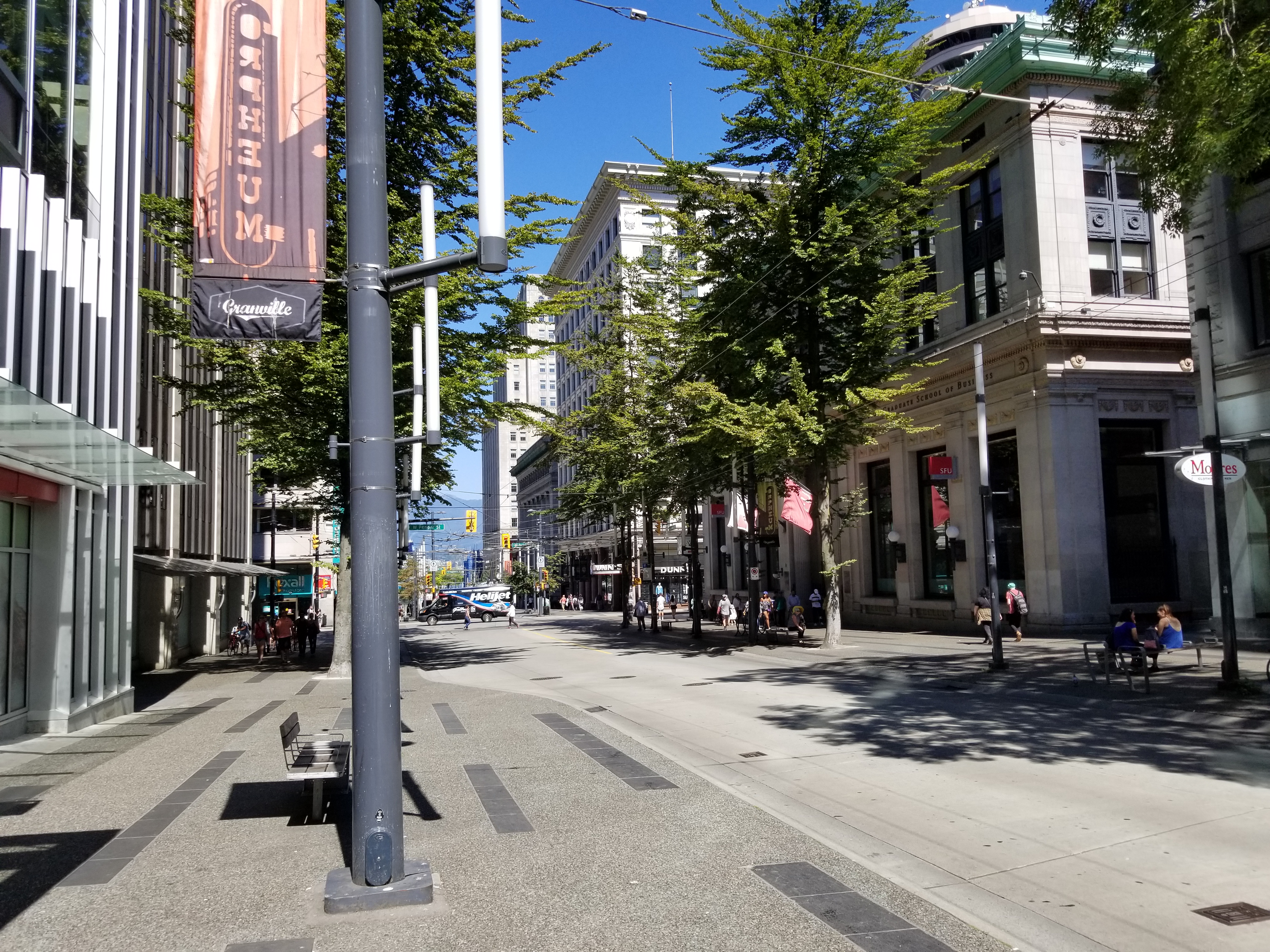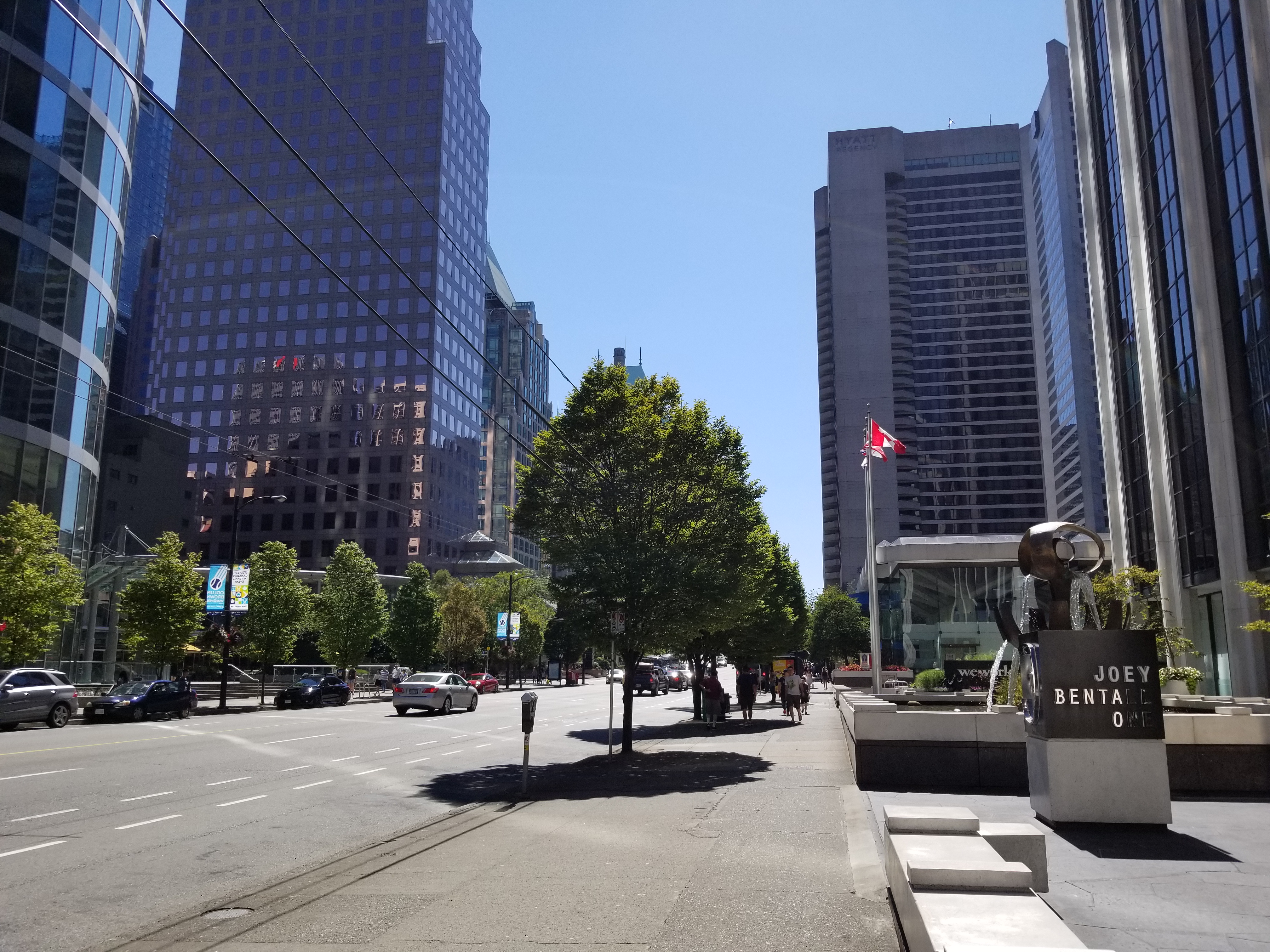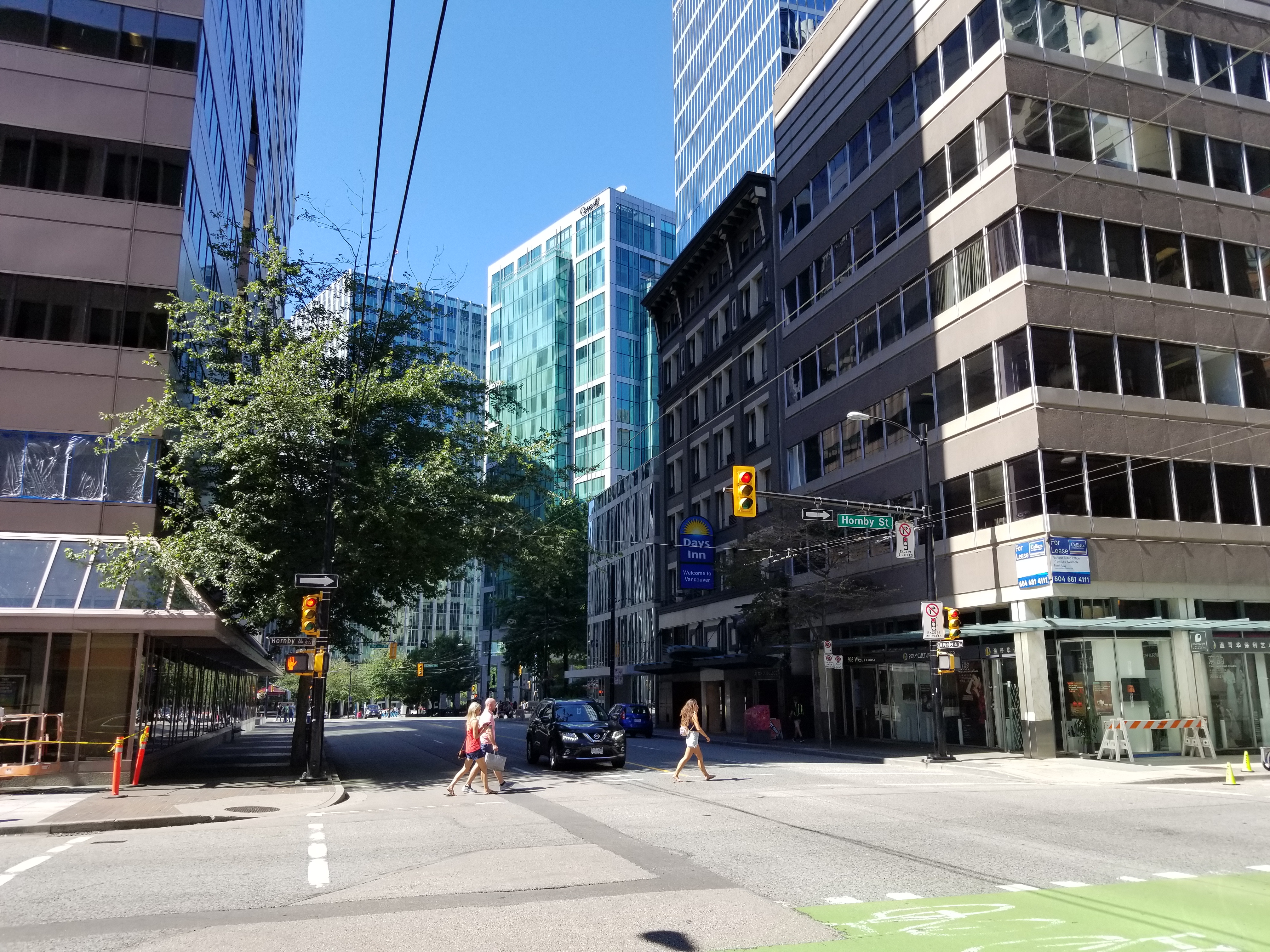 Formally named in 1885 for Rear-Admiral George Fowler Hastings of the Royal Navy, the street runs past such well-known Vancouver landmarks as the Marine Building, the Vancouver Club, Sinclair Centre, Harbour Centre (once Spencer’s, Eaton’s, then Sears and now the downtown campus of Simon Fraser University), Dominion Building and Victory Square (the location of the city’s original courthouse) and the Woodward’s Building; located in the old Dunn’s Tailors building at Homer and West Hastings is the campus of the Vancouver Film School, while on the corner of Cambie is the Carter-Cotton Building, the former headquarters of the Vancouver Province newspaper. East of Woodward’s, the street forms the heart of Vancouver’s historic original downtown, once known as the Great White Way because of its neon displays, and which is today the Downtown Eastside. Through the East End, after a stretch of warehouse-type commercial and wholesale businesses, the street forms one of the commercial cores for Vancouver’s Italian community in a mixed-ethnicity retail area in the area of Nanaimo Street, just east of which the Pacific National Exhibition and Playland are on the city of Vancouver’s eastern fringe. After leaving Vancouver, Hastings forms the core of a Burnaby retail neighbourhood known as the Heights and then traverses Capitol Hill to the Lochdale and Westridge areas.
