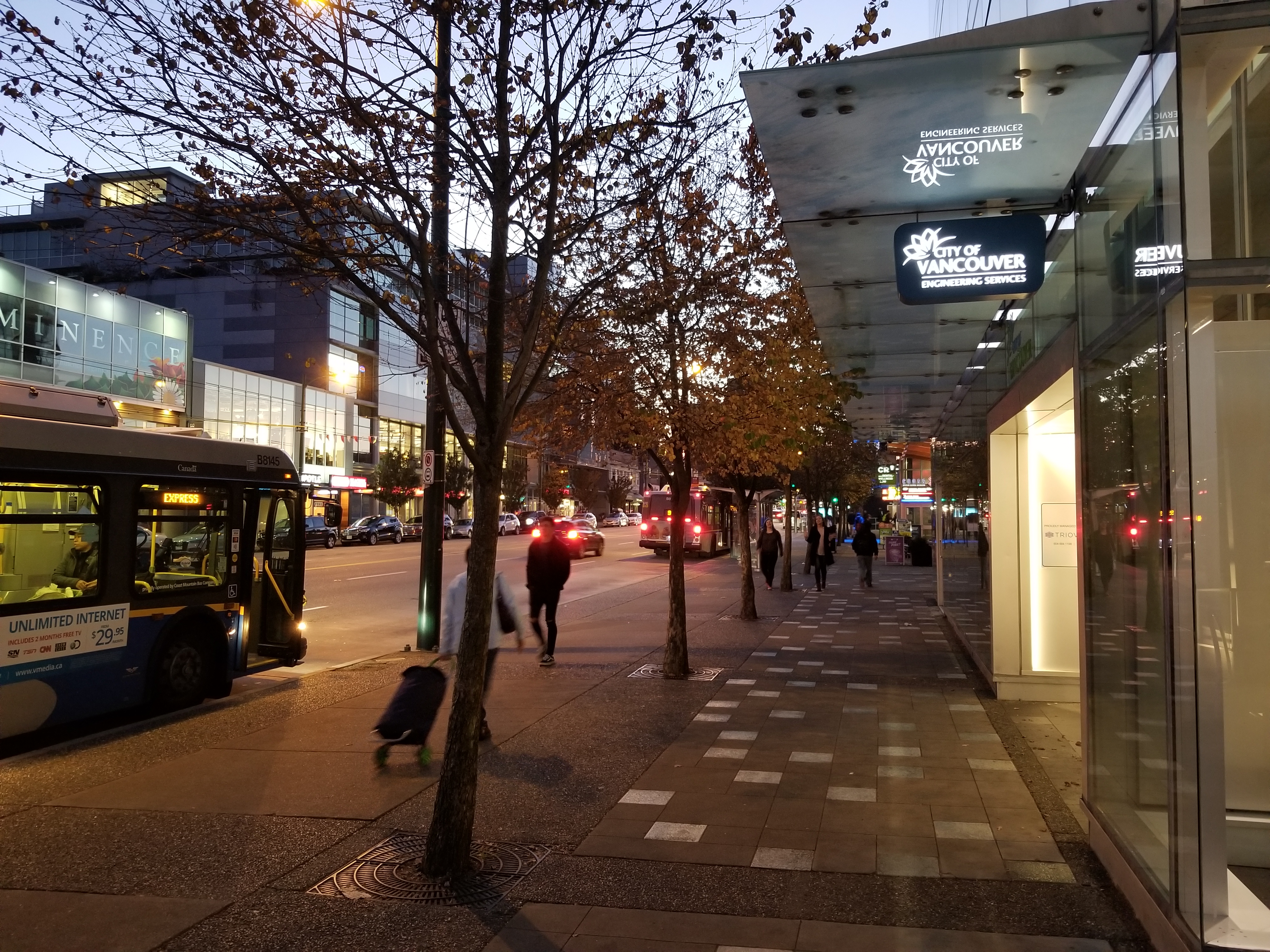 By the 1970s, the length of Broadway had become a major arterial route in Vancouver, conveying commuters from downtown to the neighbourhoods of the west and east sides. With the growth of UBC and the expansion of the Vancouver General Hospital (one block south of Broadway between approximately Oak and Cambie), traffic demands accelerated. In the 1990s, the agency then responsible for public transit in Greater Vancouver — BC Transit — introduced an express bus route, the 99 B-Line, to help reduce congestion. The Vancouver transportation plan for Broadway notes that congestion is such that the bus service is at capacity, and will not be eased until a new rapid transit line is built paralleling the street. It is anticipated that the SkyTrain’s Millennium Line will be extended to Central Broadway by 2021; the extension is expected to connect with Canada Line at Broadway-City Hall Station, at the intersection of Broadway and Cambie Street.