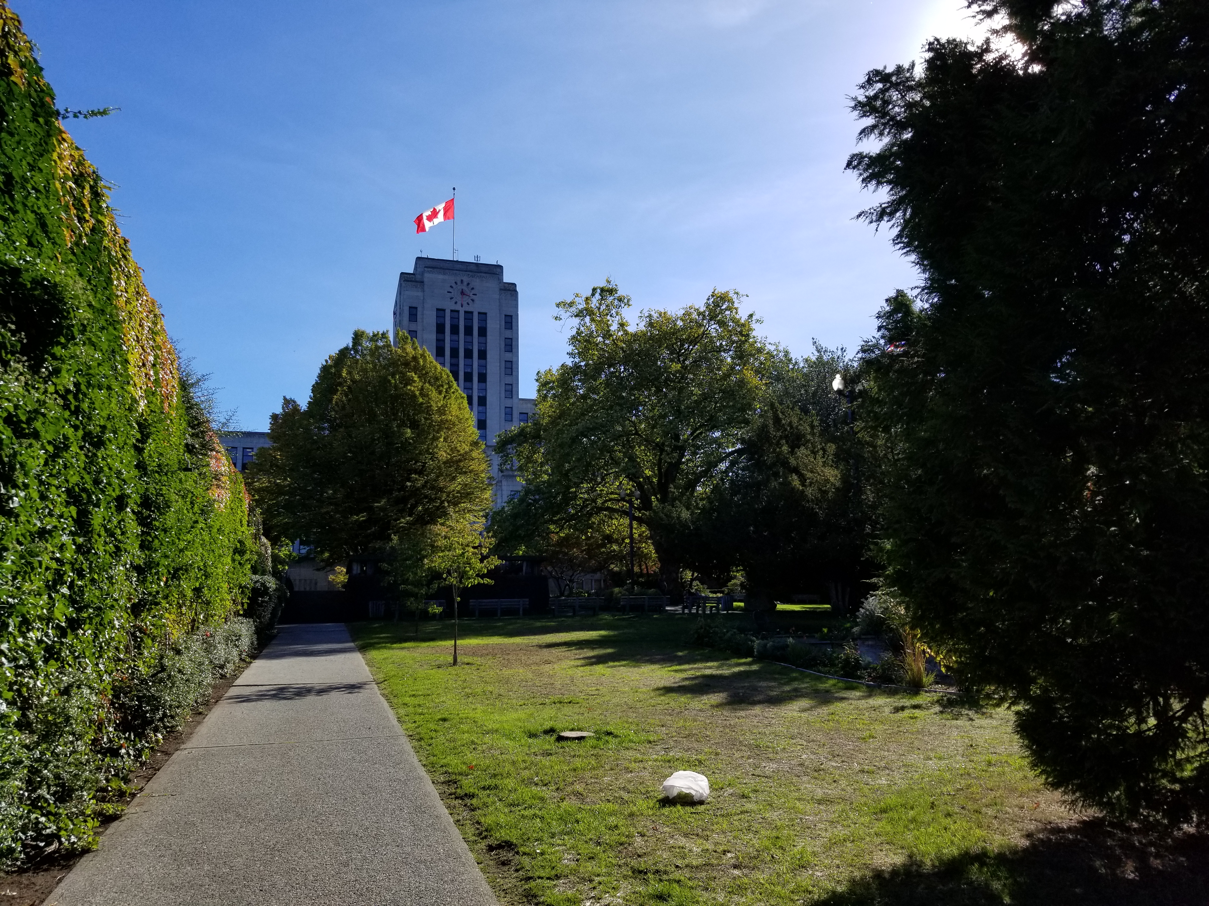 The building is served by Broadway–City Hall station on the SkyTrain’s Canada Line.