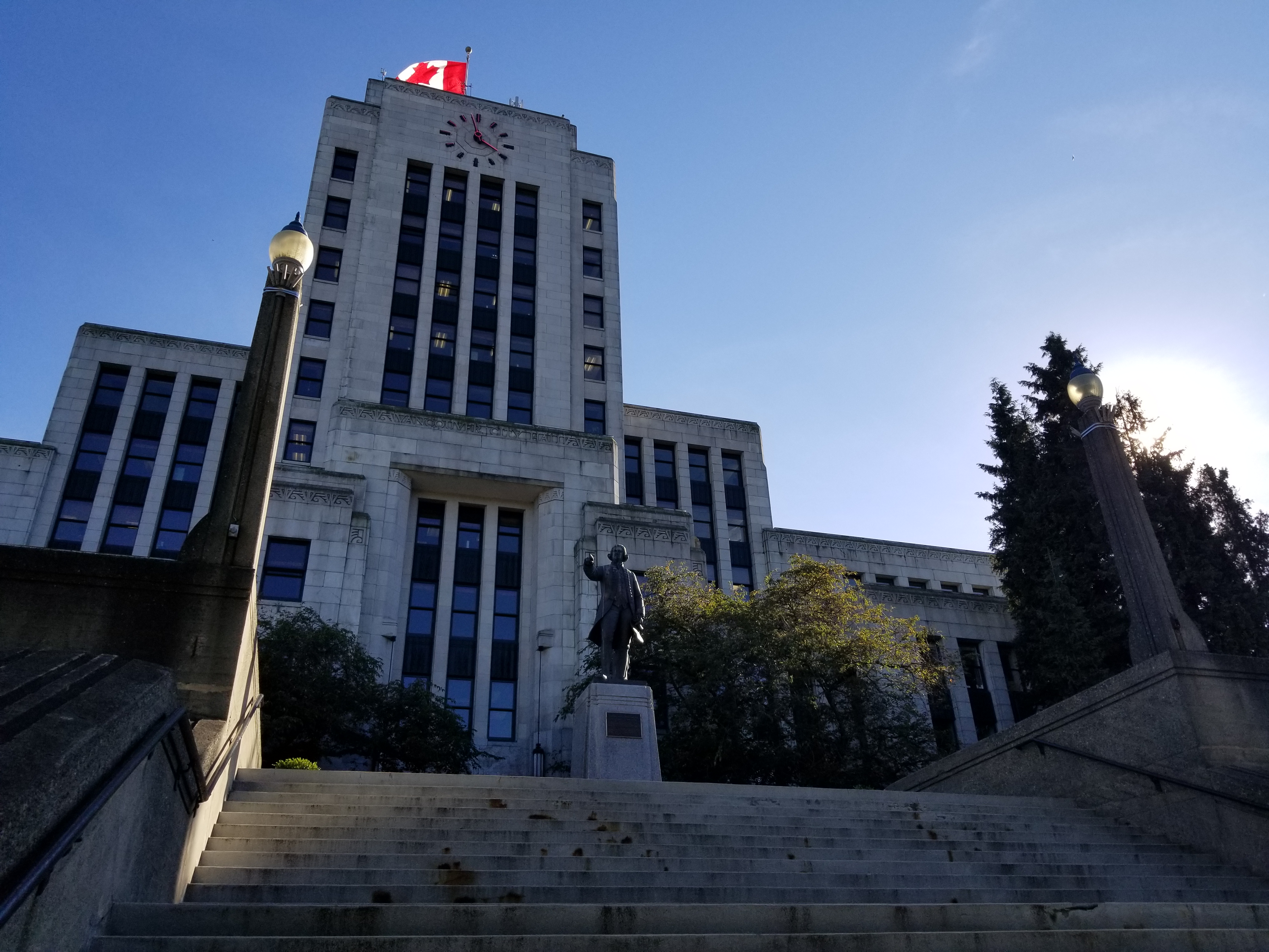 Construction on the building was begun the same year the opened. Construction cost $1 million, and was completed on December 1, 1936. Each lock plate on the outer doors displays the Vancouver Coat of Arms, and each door knob bears the monogram of the building. The ceiling on the second floor of the rotunda was made of gold leaf from several British Columbia mines.