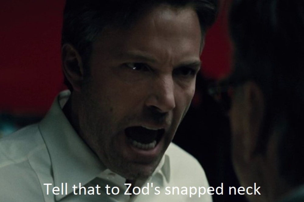 Fans went crazy over that single piece of Batman dialogue, inspired by the fan-dividing scene at the end of Man of Steel where Superman broke General Zod’s neck. #ZodsSnappedNeck inspired tons of memes. Someone started a designated Twitter account. The Suicide Squadcast did a dramatic reading on its most recent podcast. There’s even a change.org petition to have someone’s neck snapped in Suicide Squad—although it only has three signatures right now.