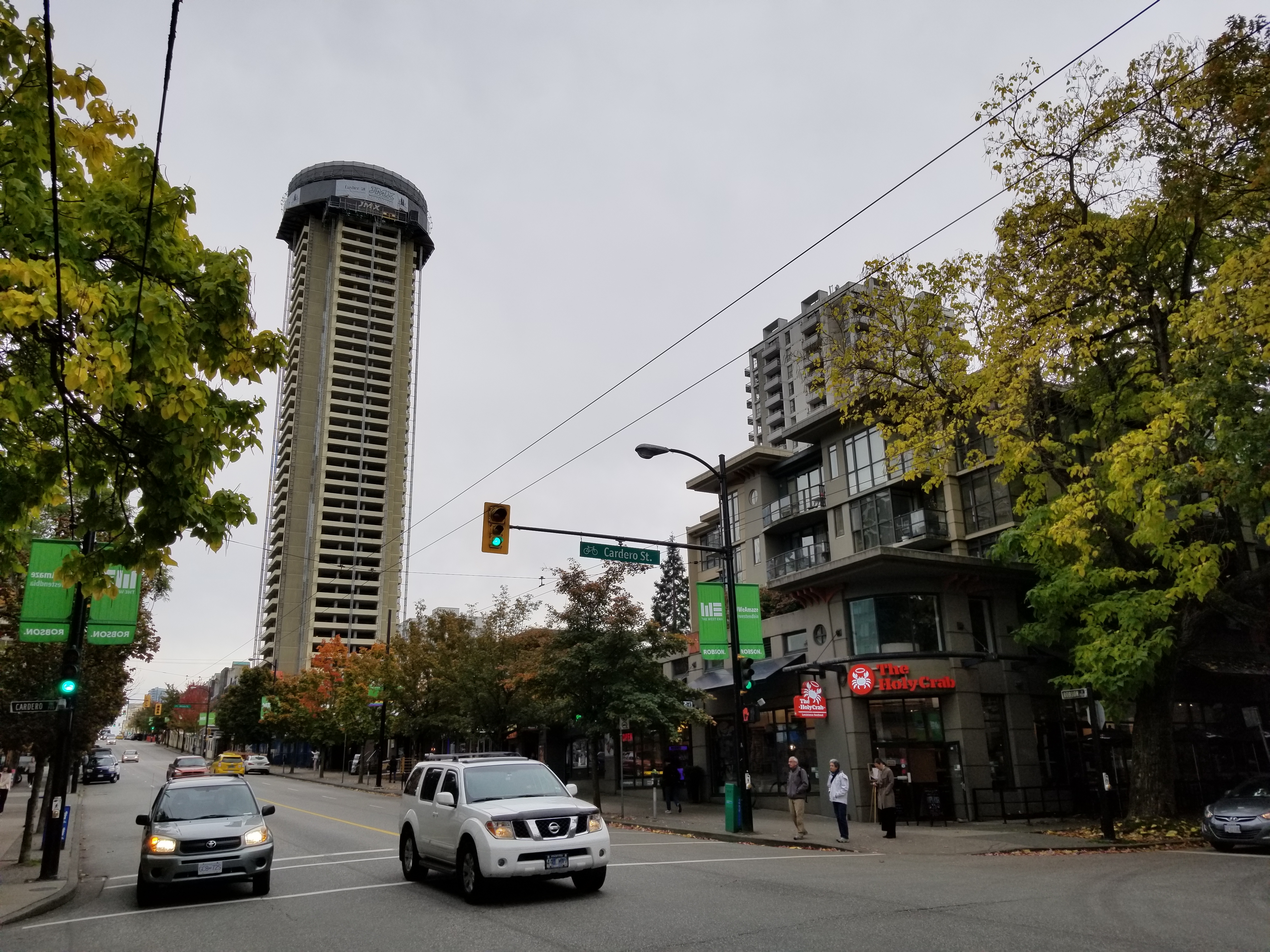 In 1895, train tracks were laid down the street, supporting a concentration of shops and restaurants. From the early to middle-late 20th century, and especially after significant immigration from postwar Germany, the northwest end of Robson Street was known as a centre of German culture and commerce in Vancouver, earning the nickname Robsonstrasse, even among non-Germans (this name lives on in the Robsonstrasse Hotel on the street). At one time, the city had placed streetsigns reading “Robsonstrasse” though these were placed after the German presence in the area had largely vanished.