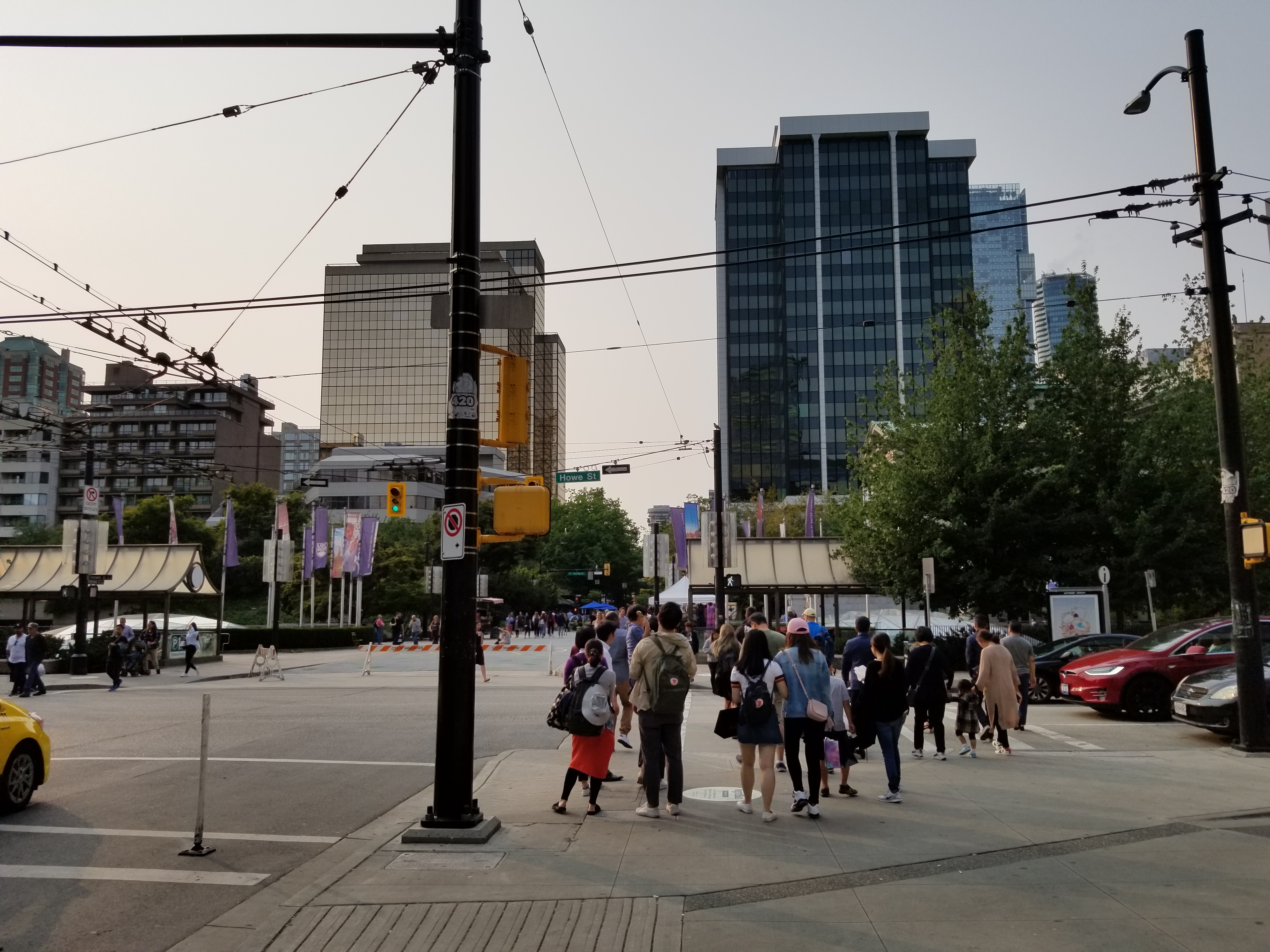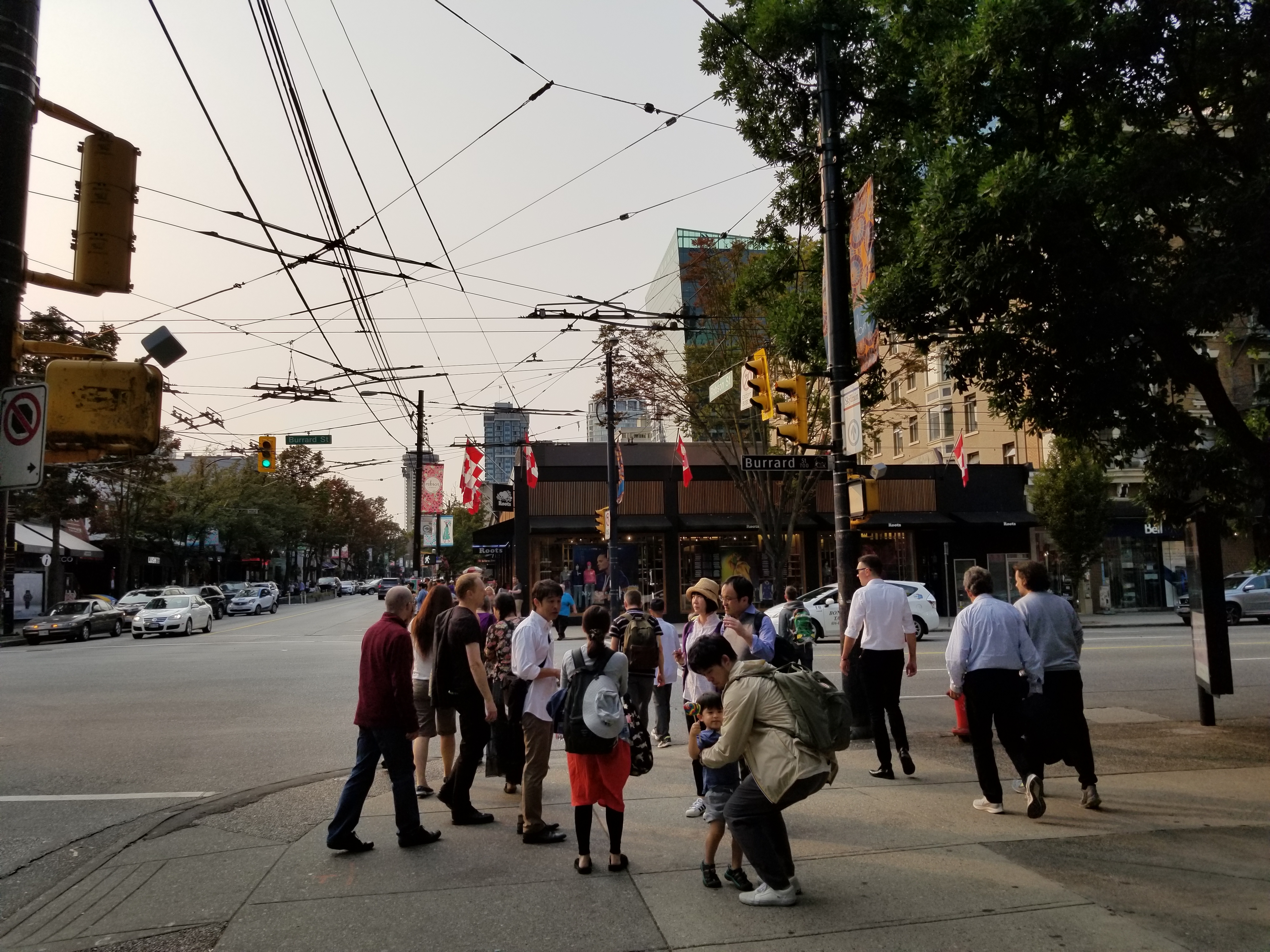 In 1895, train tracks were laid down the street, supporting a concentration of shops and restaurants. From the early to middle-late 20th century, and especially after significant immigration from postwar Germany, the northwest end of Robson Street was known as a centre of German culture and commerce in Vancouver, earning the nickname Robsonstrasse, even among non-Germans (this name lives on in the Robsonstrasse Hotel on the street). At one time, the city had placed streetsigns reading “Robsonstrasse” though these were placed after the German presence in the area had largely vanished.