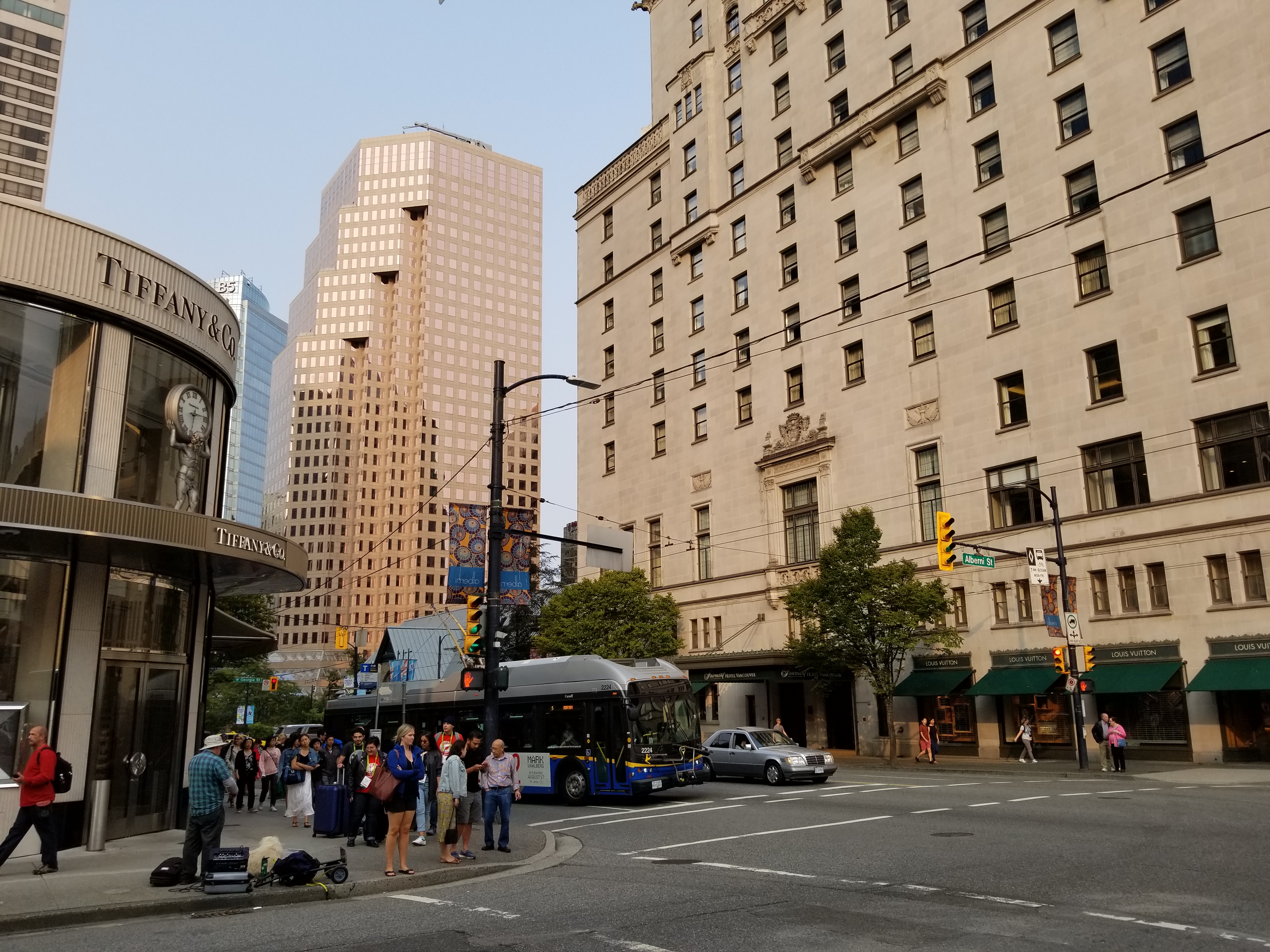 Robson Street is a major southeast-northwest thoroughfare in downtown and West End of Vancouver, British Columbia, Canada. Its core commercial blocks from Burrard Street to Jervis were also known as Robsonstrasse. Its name honours John Robson, a major figure in British Columbia’s entry into the Canadian Confederation, and Premier of the province from 1889 to 1892. Robson Street starts at BC Place Stadium near the north shore of False Creek, then runs northwest past Vancouver Library Square, Robson Square and the Vancouver Art Gallery, coming to an end at Lost Lagoon in Stanley Park.