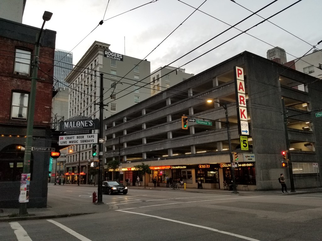 At the north end of the site, visually dividing the complex from the industrial district to the north, the commercial building has a two-story glazed lower story, topped by a two-story retail and leisure zone. Finished in concrete panels, this was designed to house shops, a bowling alley, and other amenities for use by Marina City’s residents and office workers. The ten-story office building stands astride the commercial structure, on spindly vaulted concrete legs. Nestled into the center of the complex, the saddle-shaped theater roof rests on low walls, largely glazed at the entry. Walls and roof are finished with standing-seam lead panels, and oversized round cast-concrete eaves mark the transition between roof and walls.