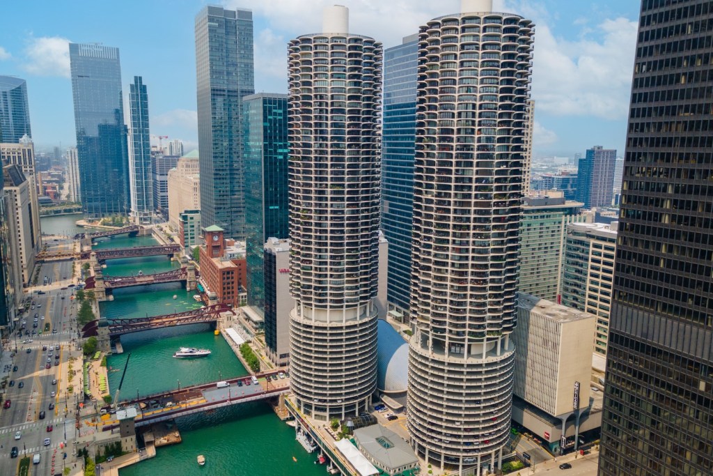 Opened in 1967, Marina City presented a high-profile, architecturally evocative alternative to the suburban ideal many wealthy Chicagoans pursued in the second half of the twentieth century. The five-building downtown complex, with its expressive paired apartment towers and whale’s mouth theater presented an idiosyncratic but compelling vision of vibrant metropolitan life in miniature, prefiguring the urban renaissance of the early twenty-first century.