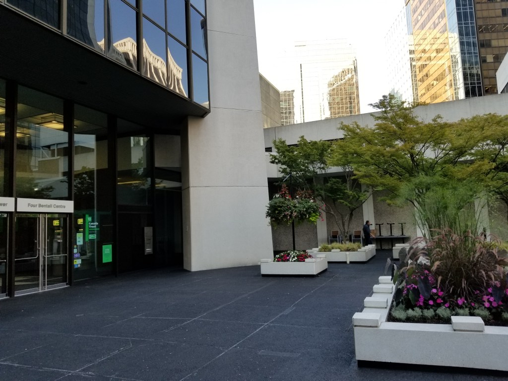The intersection of Burrard Street and Georgia Street is considered to be the centrepoint of Downtown Vancouver, along with the more tourist-oriented and upscale shopping-spirited intersection of Burrard Street and Robson Street to the south. At and due northeast of the centre is the heart of the Financial District. Further down closer to Vancouver Harbour stands the historic Marine Building, an Art Deco masterpiece, opened in 1930, two years before the Art Deco pylons of the Burrard Bridge at the opposite end of the street. Finally at the Harbour lies Canada Place and the Vancouver Convention Centre.
