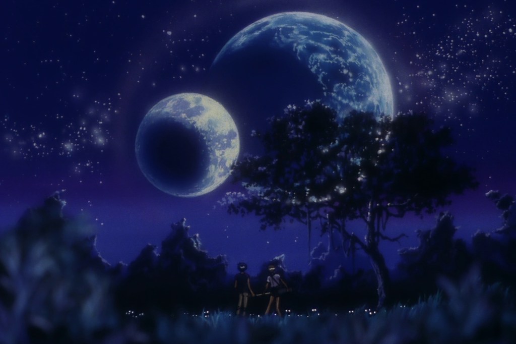 Rather, this is a completely earnest fantasy, whose teen passions and scene-chewing villains could be ludicrous on paper, but which work superbly within the heightened emotionalism of anime, with few of its cheesy excesses. There’s next to no super-deformity, for instance, though Hitomi’s eyes can get very big.