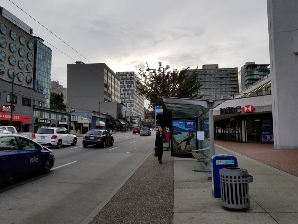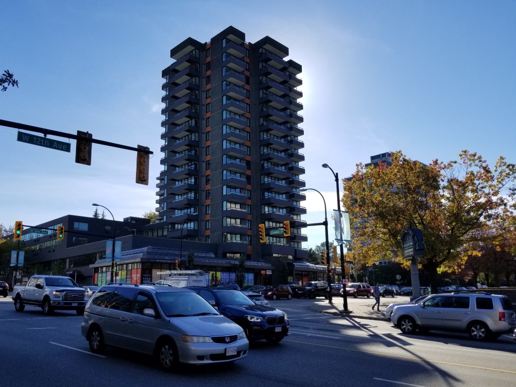 The route begins as “West Broadway” at the intersection of Wallace Crescent and 8th Avenue, in the affluent residential neighbourhood of West Point Grey, a few kilometres east of the University of British Columbia (UBC). Past Alma Street, Broadway takes over from 10th Avenue as one of Vancouver’s major thoroughfares, as it enters Greek West Broadway (or Greektown) section of Vancouver’s Kitsilano district. East of here are several blocks of generally trendy, upscale shops interspersed with low-rise apartment blocks and small supermarkets. The surrounding neighbourhoods generally consist of large, older homes dating from the early twentieth century, many of which have been subdivided into rental suites.