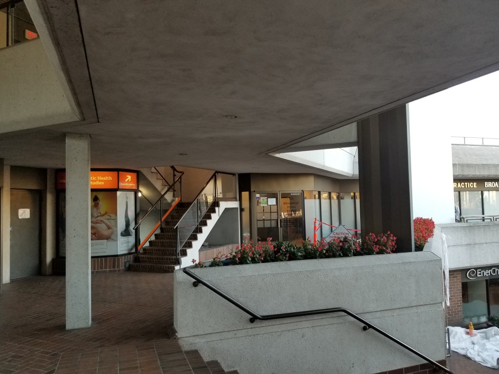 As Broadway approaches Arbutus Street, the commercial establishments become larger before transitioning into a mix of small to mid-size apartment blocks. East of Burrard Street, the apartment blocks get progressively taller, and commercial establishments larger and busier. Between Burrard and Main Street, Broadway can be considerably congested by vehicular traffic. Past Granville Street, Broadway yields completely to medium-to-large commercial structures and high-rise apartments and condominiums. Between Cambie and Main, the commercial establishments become smaller and somewhat more downscale.